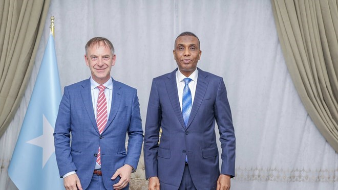 Mogadishu (HOL) — Somali Prime Minister Hamse Abdi Barre on Tuesday held a high-level meeting with German Ambassador to Somalia Sebastian Groth to discuss expanding cooperation between the two countries in key areas including security, investment, and economic development.