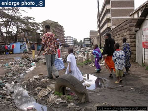That unsightly place, however, hides gigantic treasures, diversity and complexity. Beside the mud, dirt, noise, pollution, disorder and anarchy, lie untold riches. There are comfortable lodges, modest “malls”, and you can find almost anything. The lodge I slept in was relatively an oasis. It had hygienic feel, a self contained rooms, and hot water. Outside was another story. Right in front of the lodge seemed a battle front, a no man’s land. Refuse, people, goods, and cars shared one tinny space. Paradoxically, the place is filthy, as it is wealthy. Evidently its wealth is not equally distributed.
