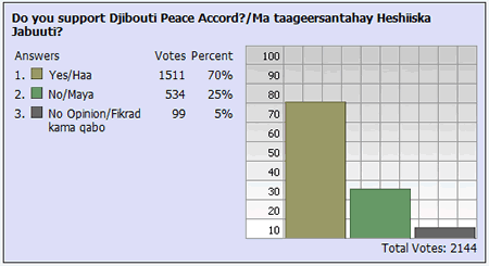 | Codbixin ay internetka ku qaaday HOL. Soomaalida badankeeda 70% waxay taageereen Heshiiska lagu gaaray Jabuuti |