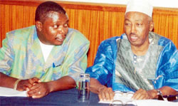 Nicholas Musonye (left), the Cecafa Secretary General, and the late Farah Addo. [photo: courtesy]