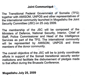 The half page declaration, ( clearly and strictly says that the only reason this Joint Corruption Team is to consume the recent pledge by the Somalia donor community in Brussels, the famous $250,000,000.00 dollars !. The team is planning how to steal it, jointly!