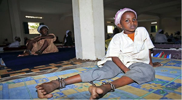 Child abuse: Children chained by Al-Shabaab, depriving them of their right to play with other children and be merry…..these children are being brainwashed to become suicide-bombers