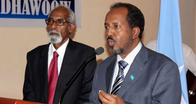 President Hassan Sheikh Mohamud with the Speaker of the Somali Parliament Mohamed Osman Jawari