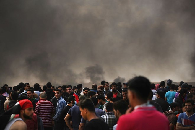 Thousands of Palestinians stand along the border fence with Israel as mass demonstrations continue on May 14, 2018 in Gaza City, Gaza. Spencer Platt / Getty