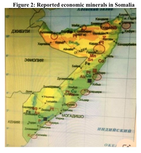 Historically, mineral exploration in Somalia has been sporadic and insufficient, both before and after the country's independence. Limited geological surveys were conducted during the colonial era and the early 1970s. These surveys unveiled the presence of a diverse range of metallic and non-metallic mineral deposits. Among the metallic minerals discovered were hematite, ilmenite, galena, pyrite, arsenopyrite, magnetite, sphalerite, along with deposits of copper, zinc, tin, chromium, and gold within the Precambrian basements of North Somalia. The crystalline basement in South Somalia was found to contain economic minerals such as uranium, thorium, hematite, magnetite, and phosphate (Figure 2).