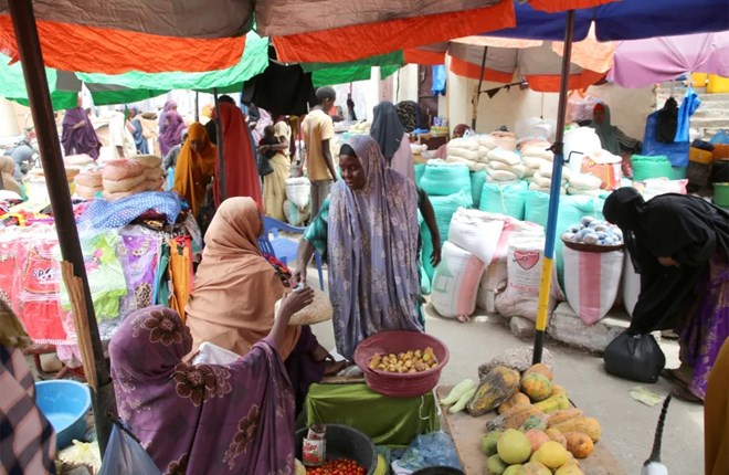 The grain market in the Somali capital, Mogadishu, on 7 April 2024. Decades of conflict and drought have left Somalia with one of the world's most intractable hunger crises.   Arab World Press via Reuters Connect